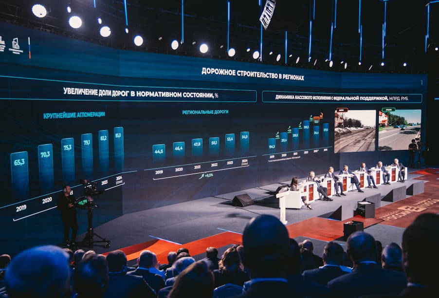 Продолжил дорожную тематику в своем докладе Заместитель Председателя Правительства РФ Марат Хуснуллин. За последние 6 лет в регионах нашей страны построили, реконструировали и отремонтировали более 150 тыс. км автомобильных дорог. С 2018-го общий объем укладки асфальтобетона составил почти 1 млрд кв. м.