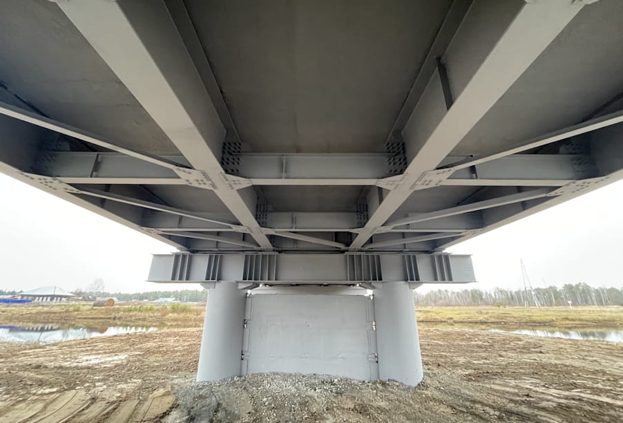 На объекте завершено устройство водоотводных лотков, которые помогут обеспечить долговечность покрытия и защиту конструкций от воздействия осадков. Дополнительно выполнен монтаж водосборных лотков на консолях и устройство деформационных швов.